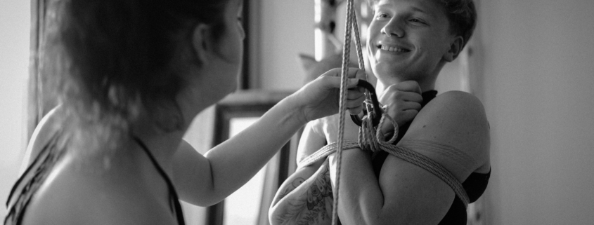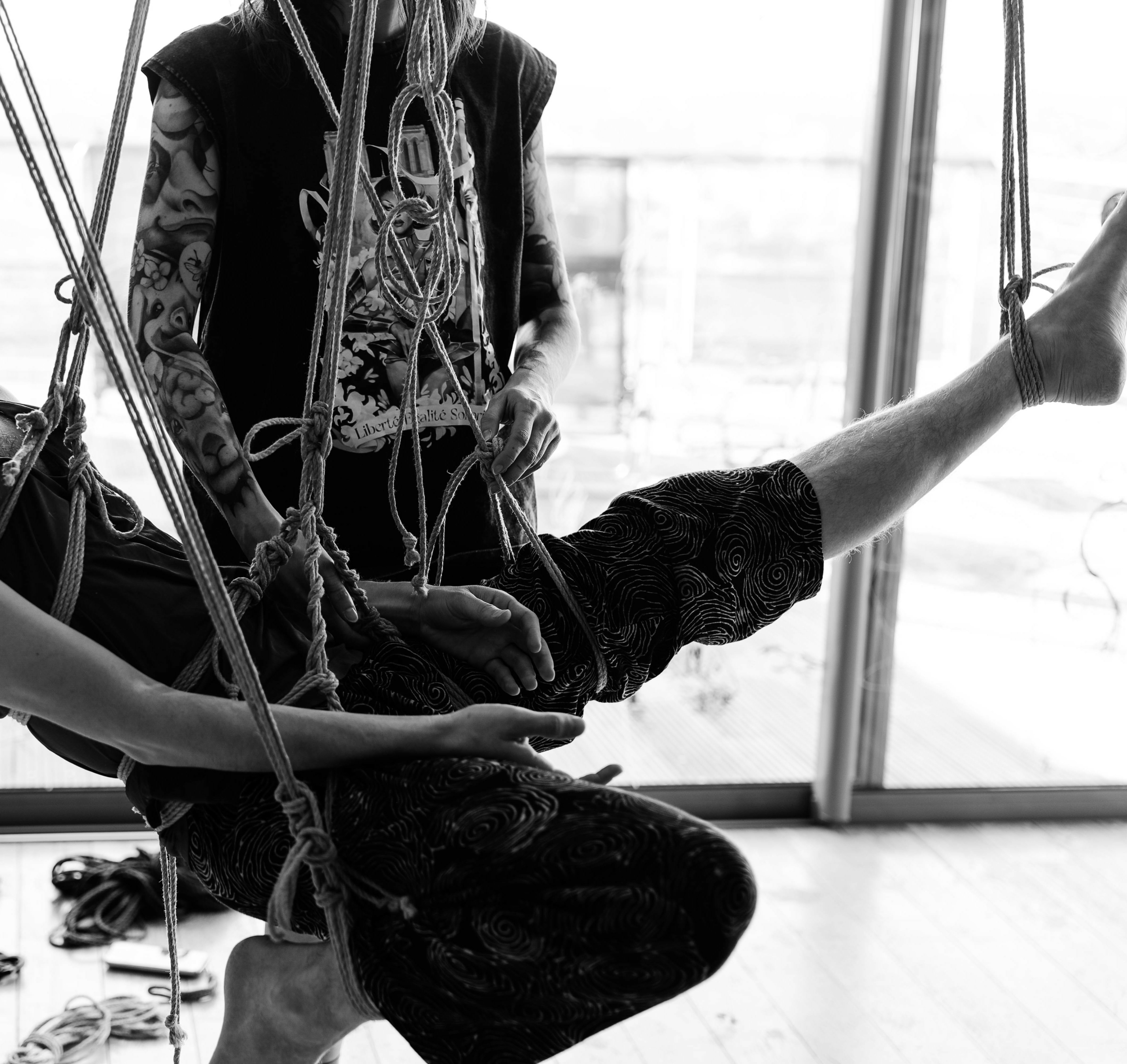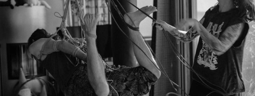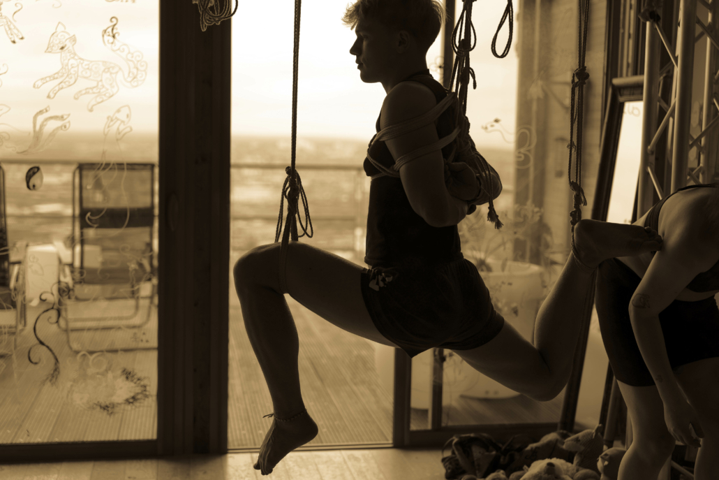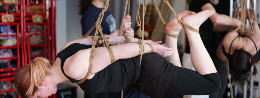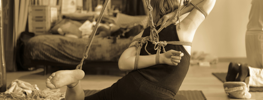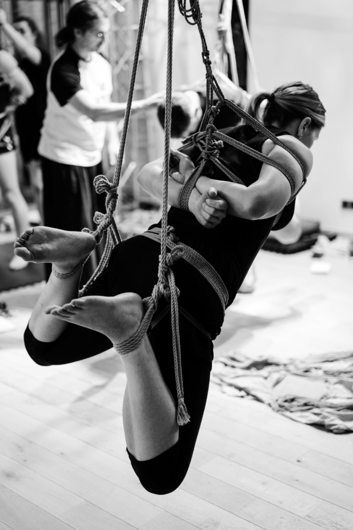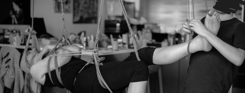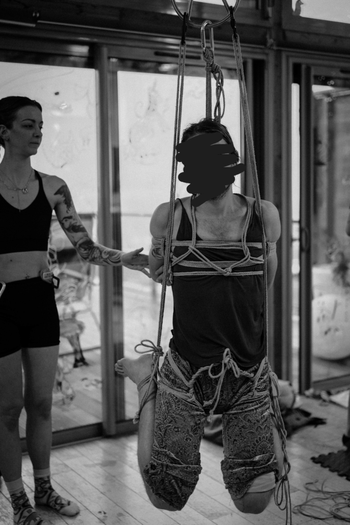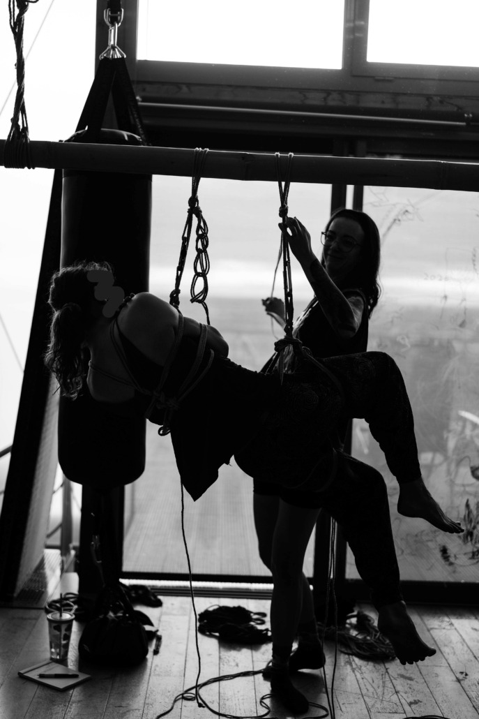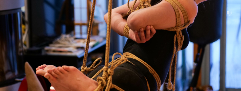 L’atelier Shibari « pratiquer la semi-suspension et la suspension sans transition » est un cycle entier de cours composé de 2 modules (au total 12h de cours) pour approcher les semi et suspensions :