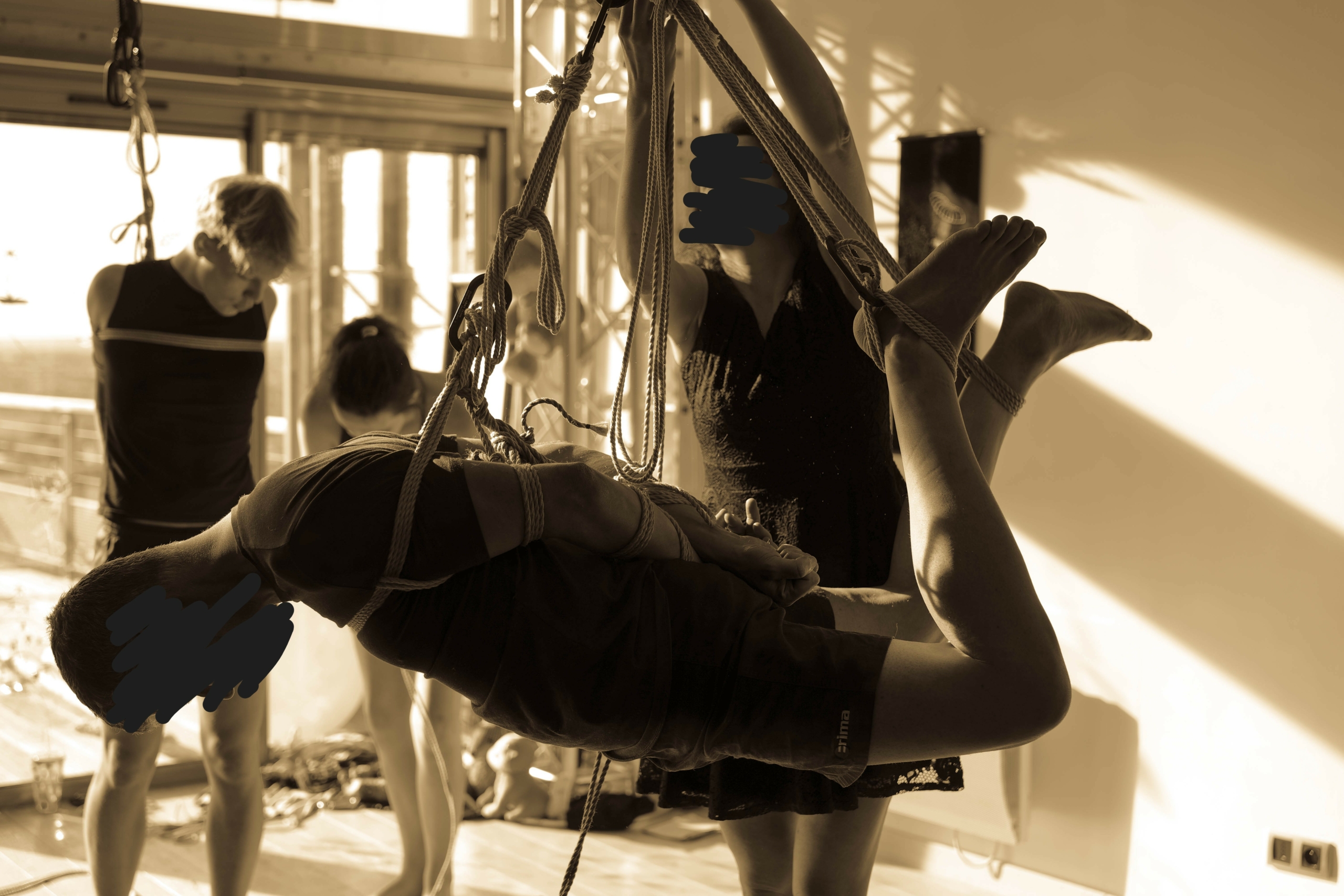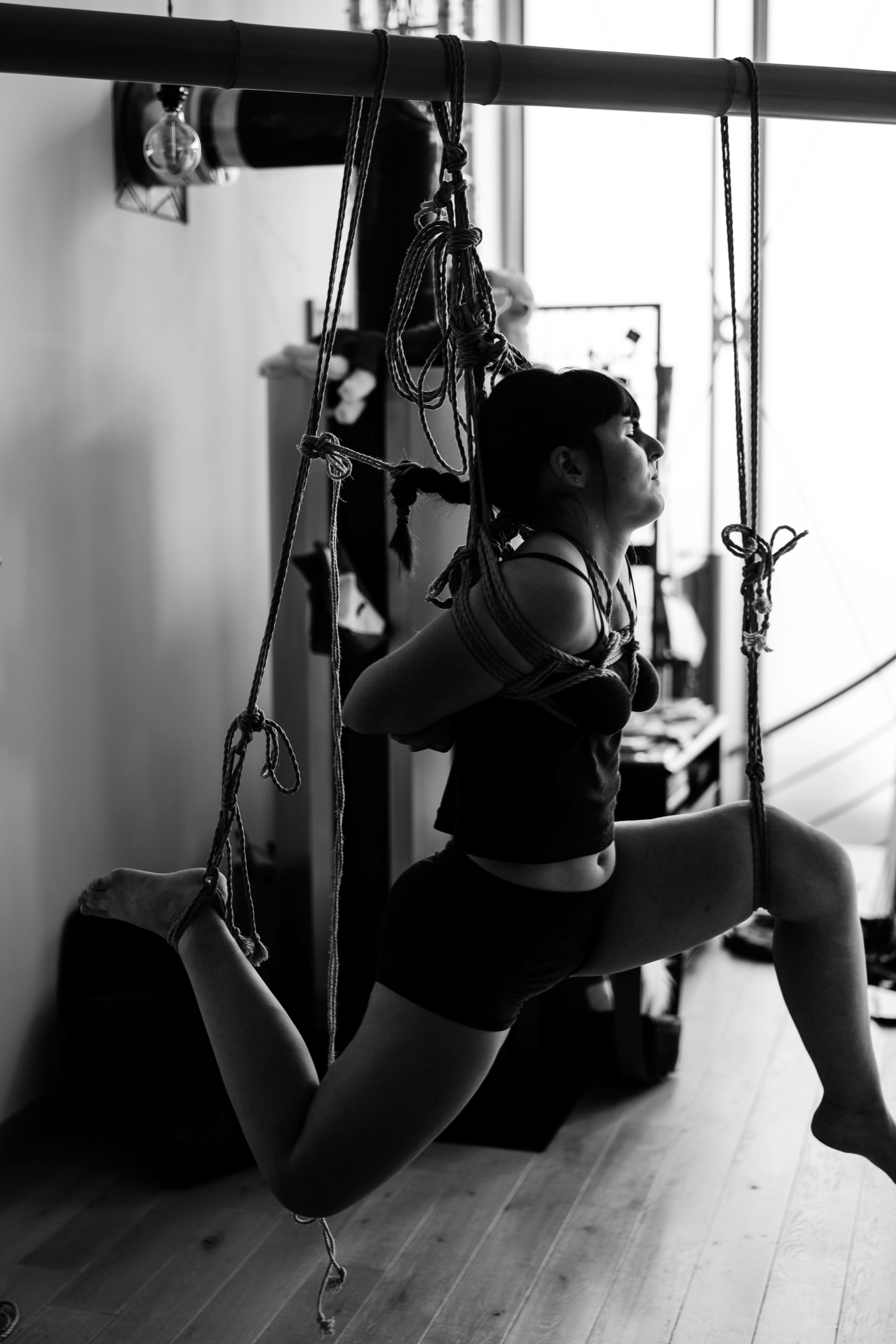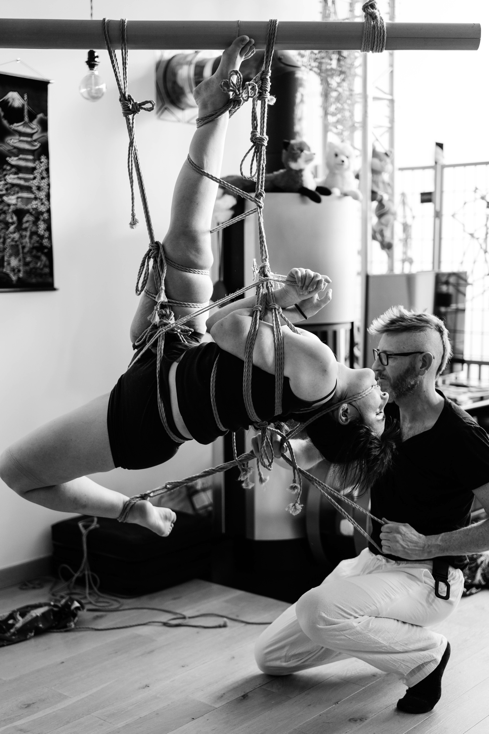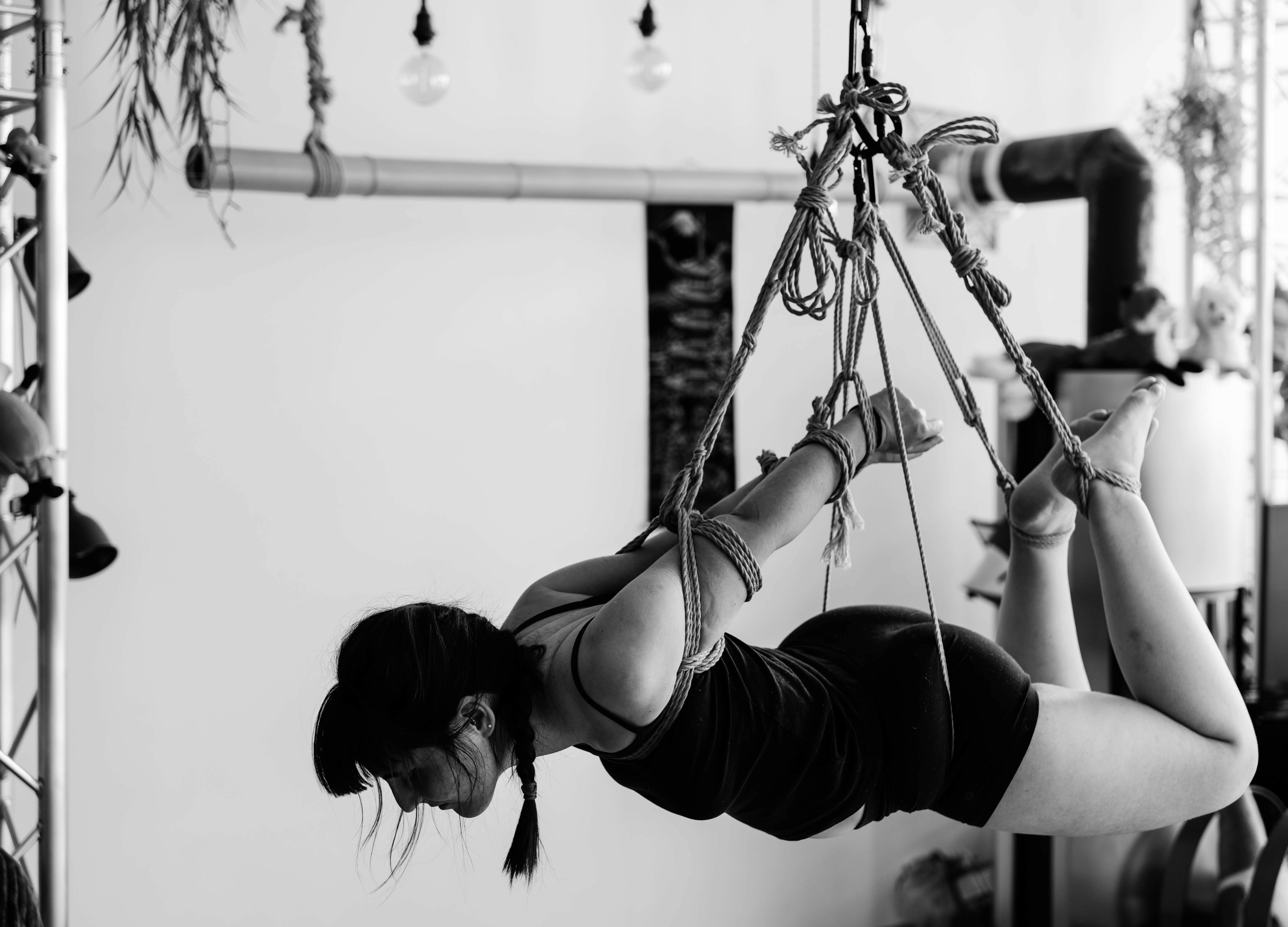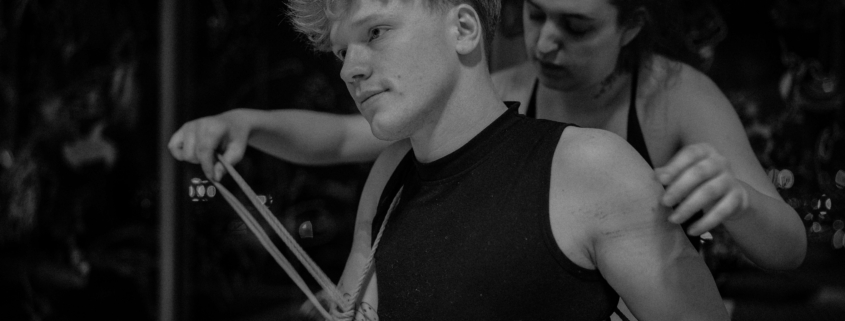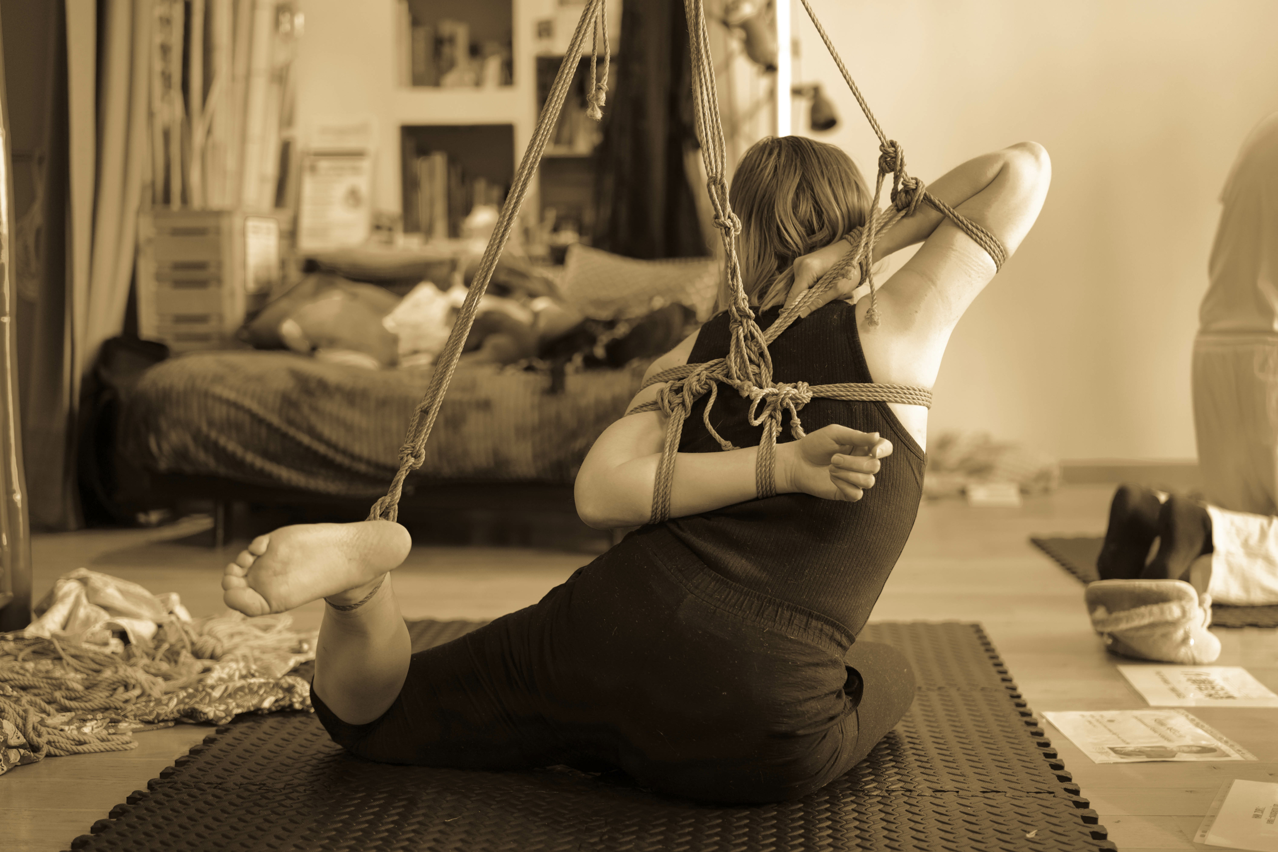 L’atelier Shibari « pratiquer la semi-suspension et la suspension sans transition » est un cycle entier de cours composé de 2 modules (au total 12h de cours) pour approcher les semi et suspensions :
