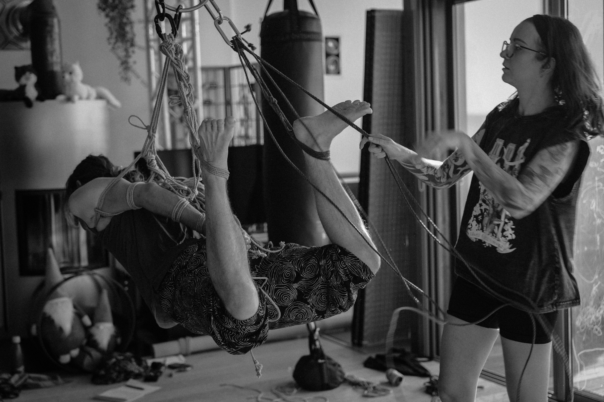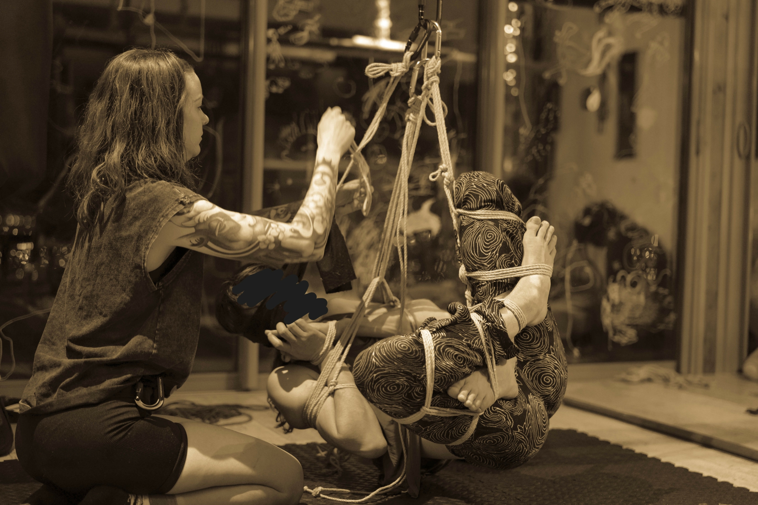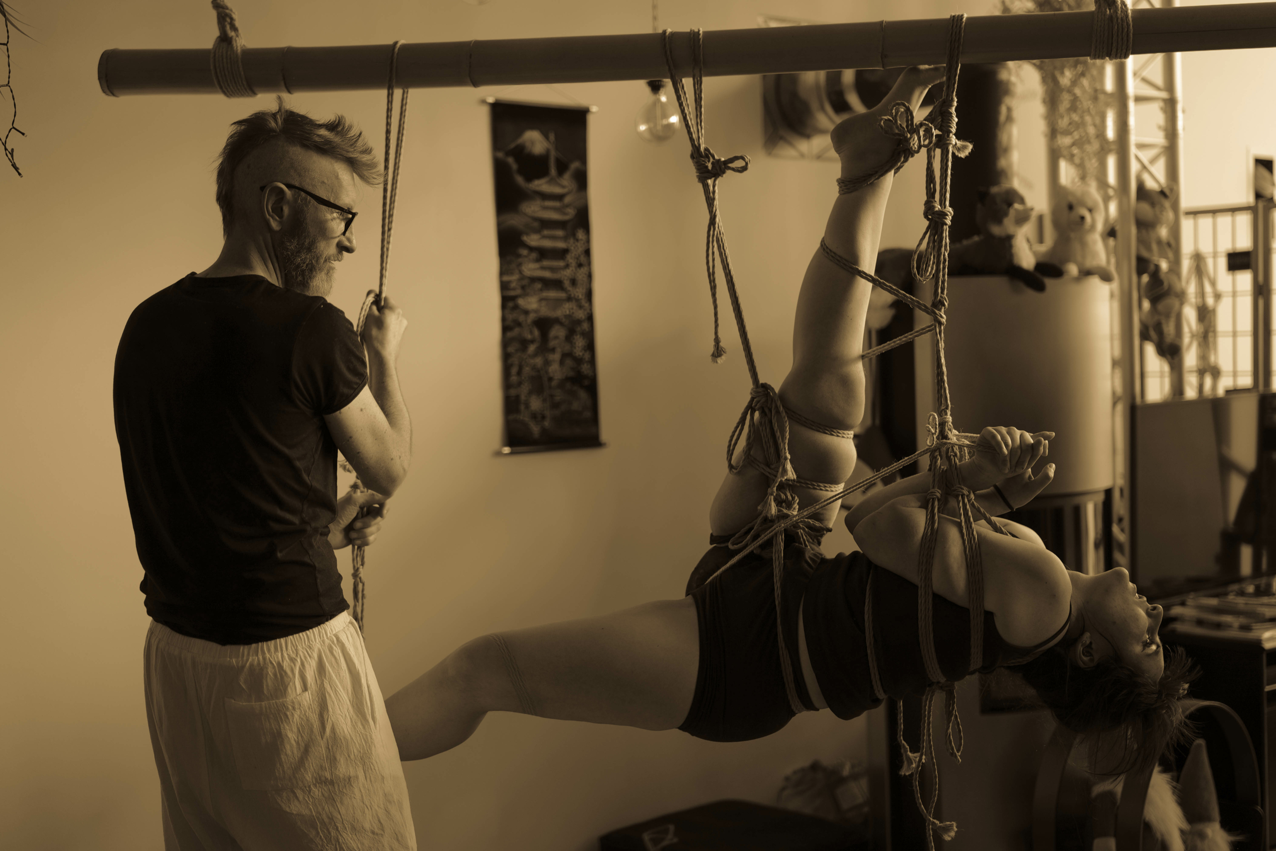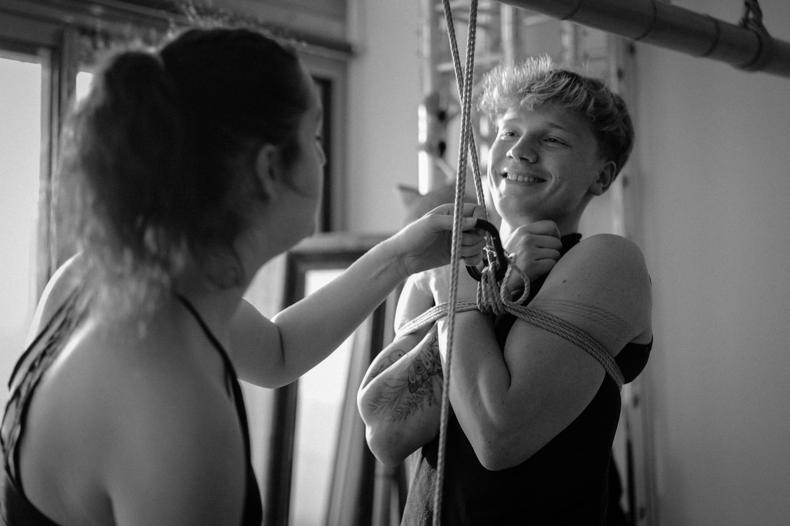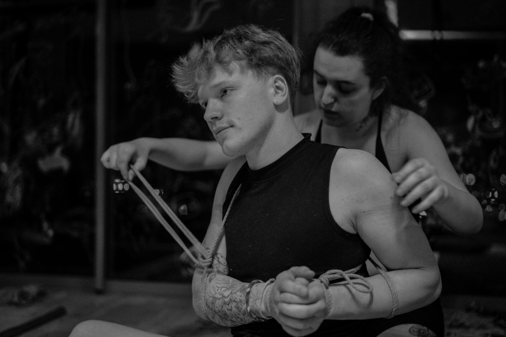 L’atelier Shibari « pratiquer la semi-suspension et la suspension sans transition » est un cycle entier de cours composé de 2 modules (au total 12h de cours) pour approcher les semi et suspensions :